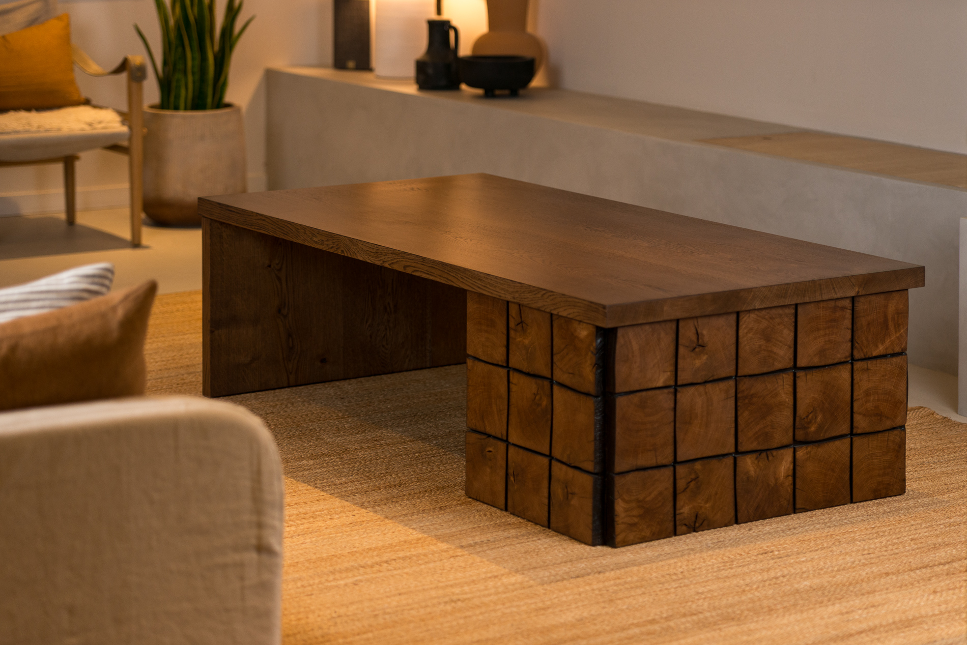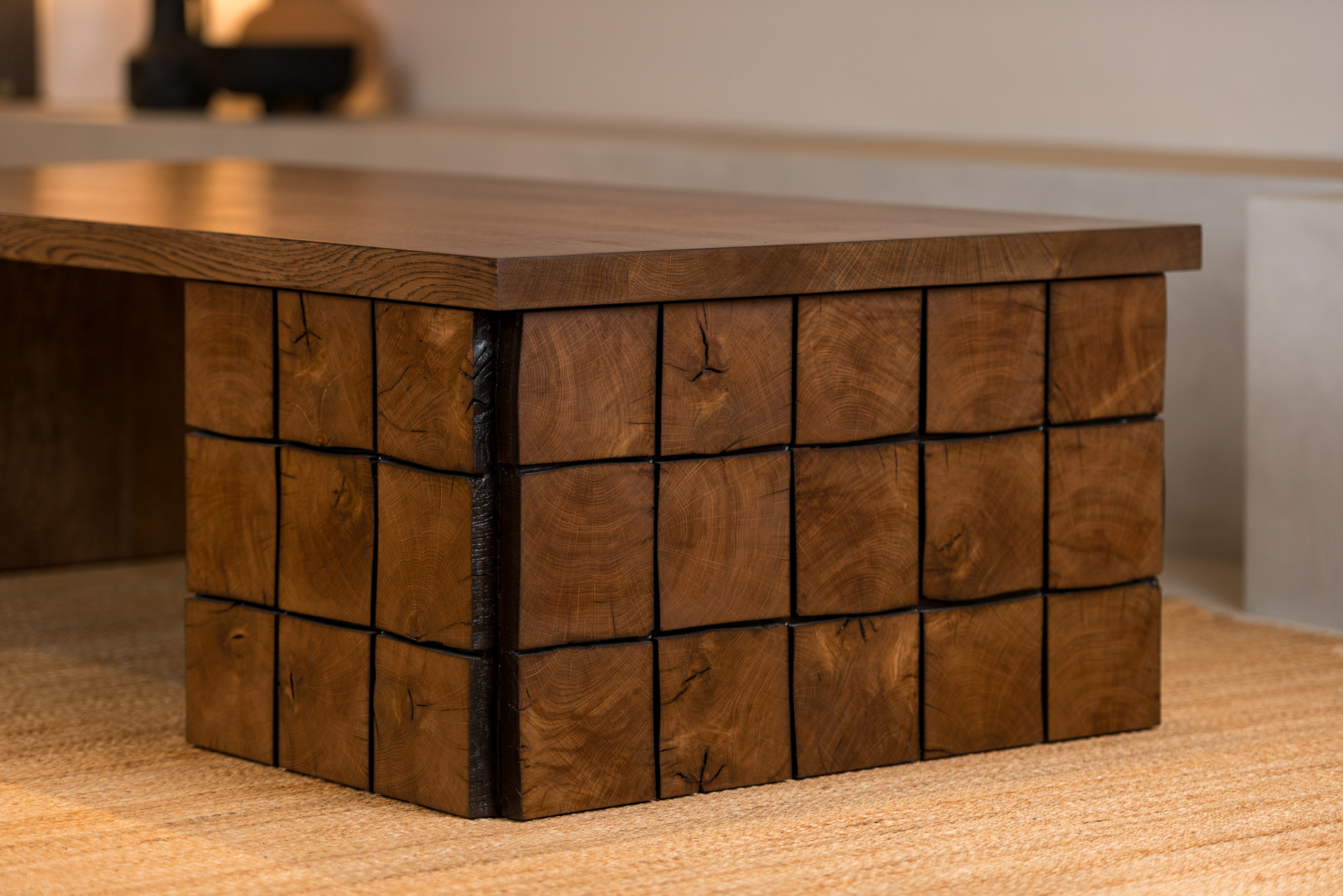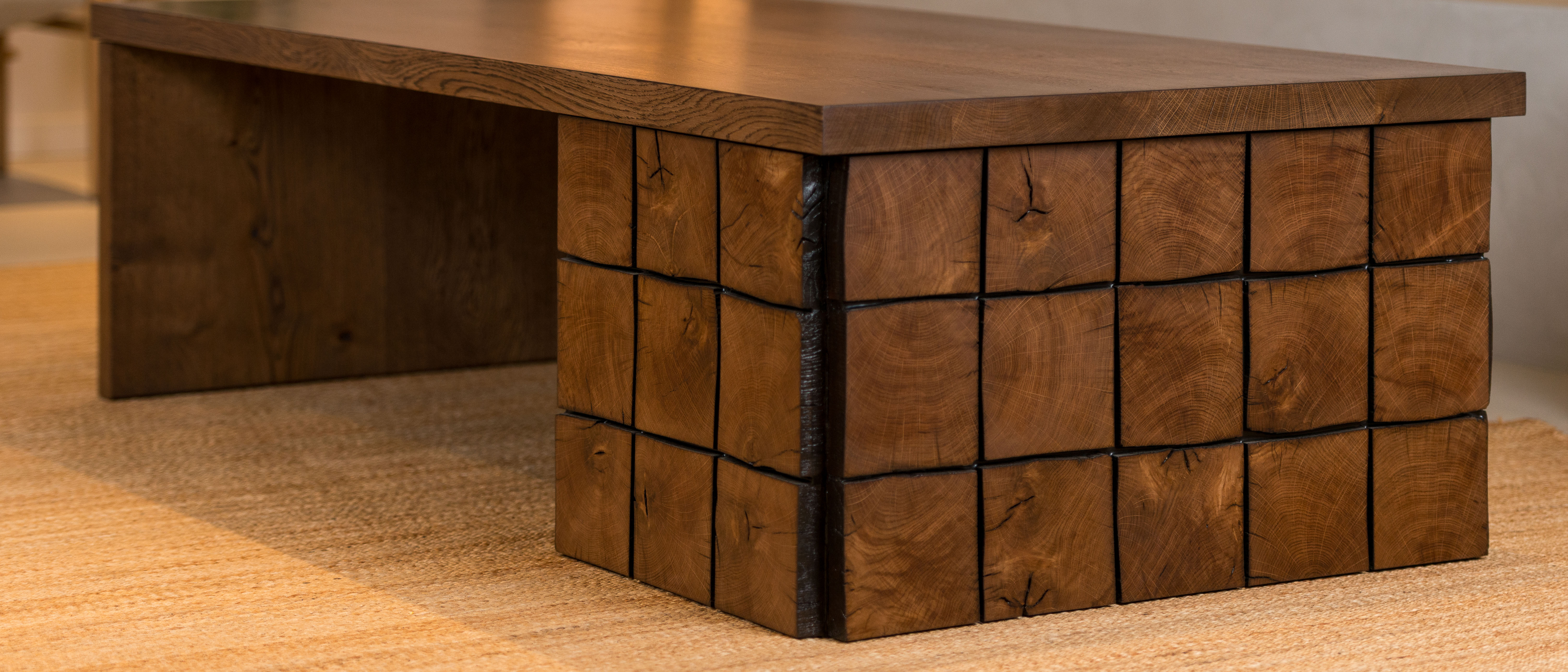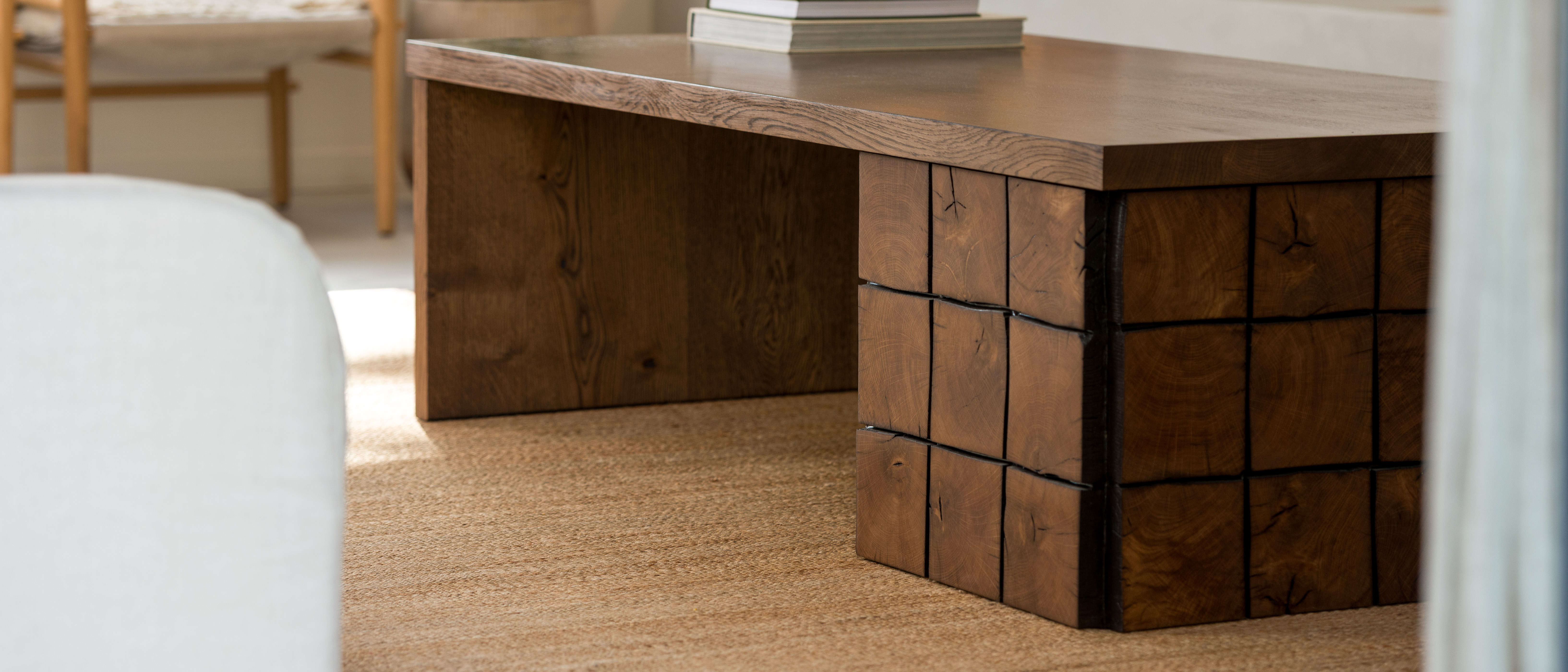 Positioning: One-off design - reclaimed beam-clad base, matched plank leg, solid oak topGewaef isn’t just a table - it’s a composition. It sits low, and it carries material contrast without shouting. Made for spaces that slow you down and invite you to look closer.