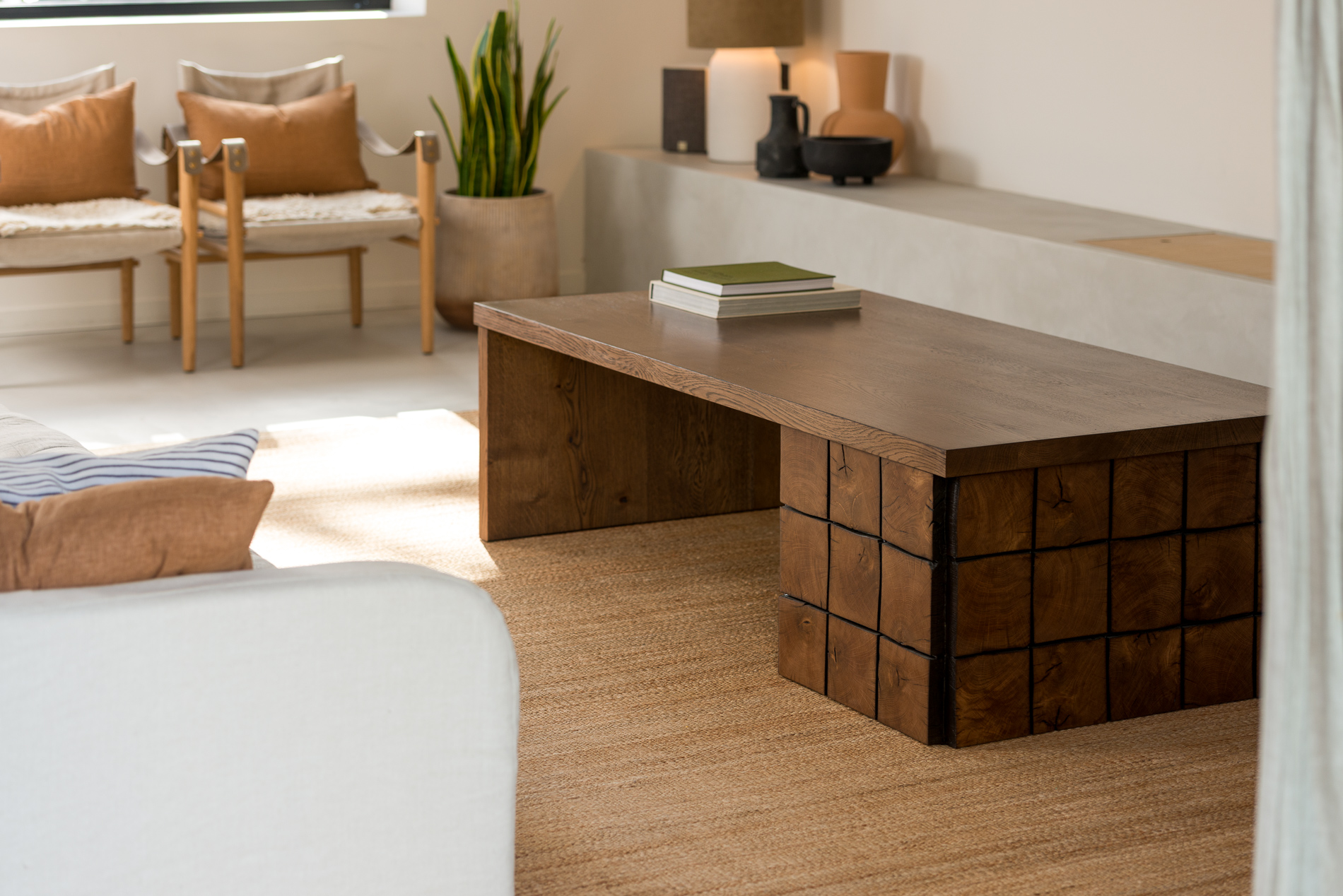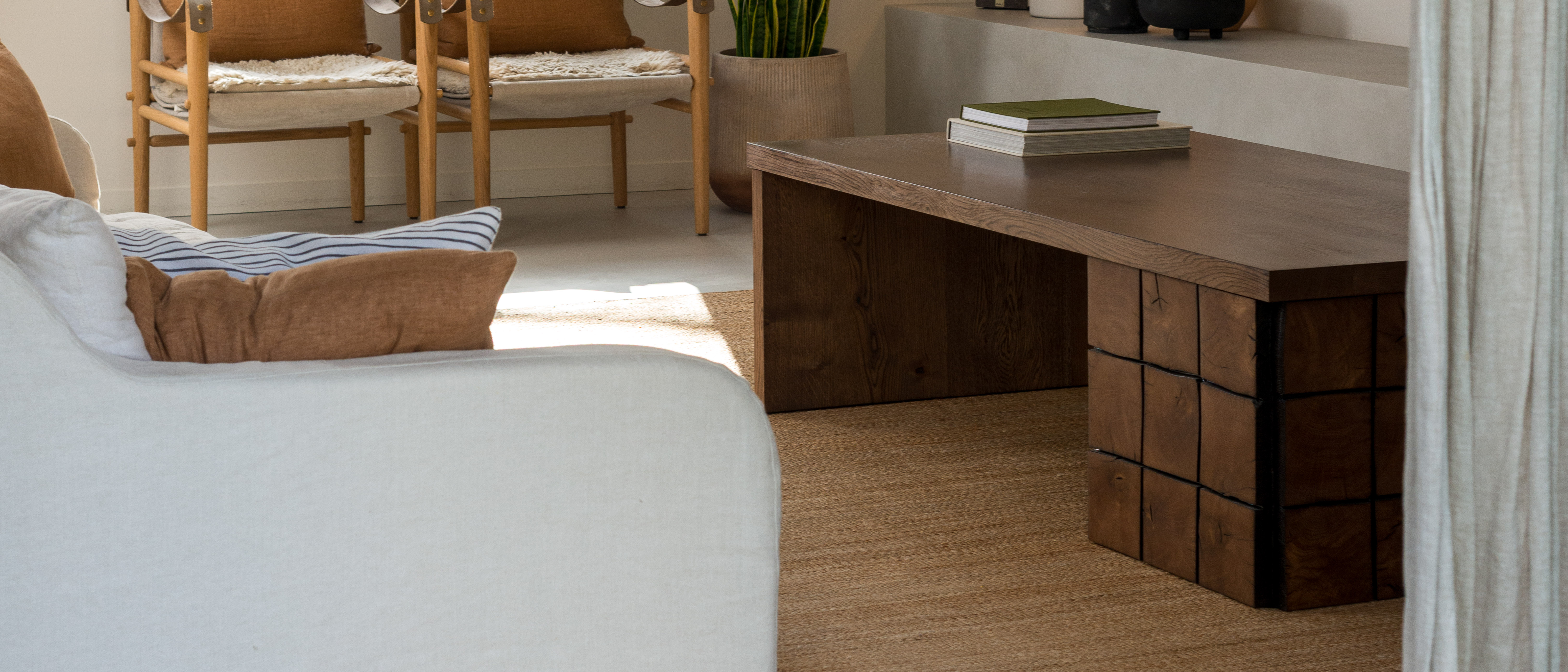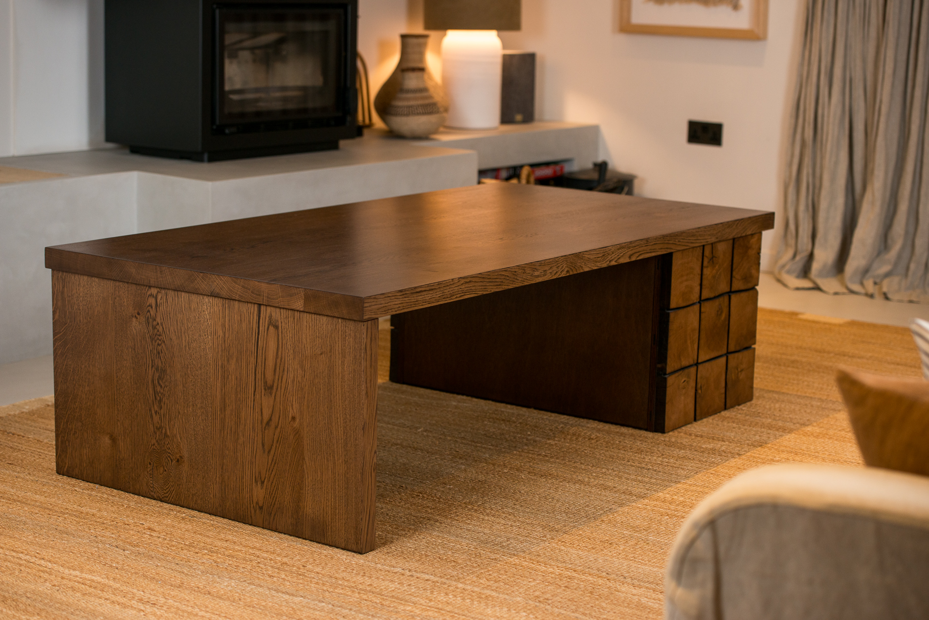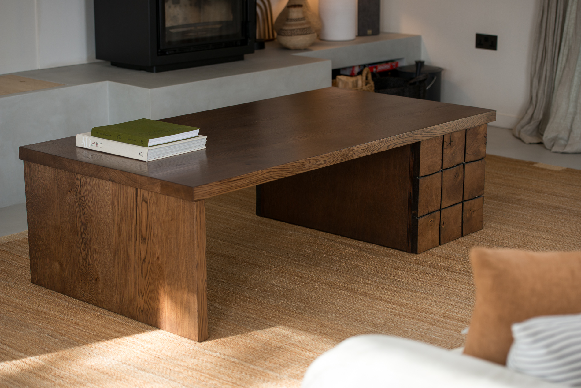Positioning: One-off design - reclaimed beam-clad base, matched plank leg, solid oak topGewaef isn’t just a table - it’s a composition. It sits low, and it carries material contrast without shouting. Made for spaces that slow you down and invite you to look closer.